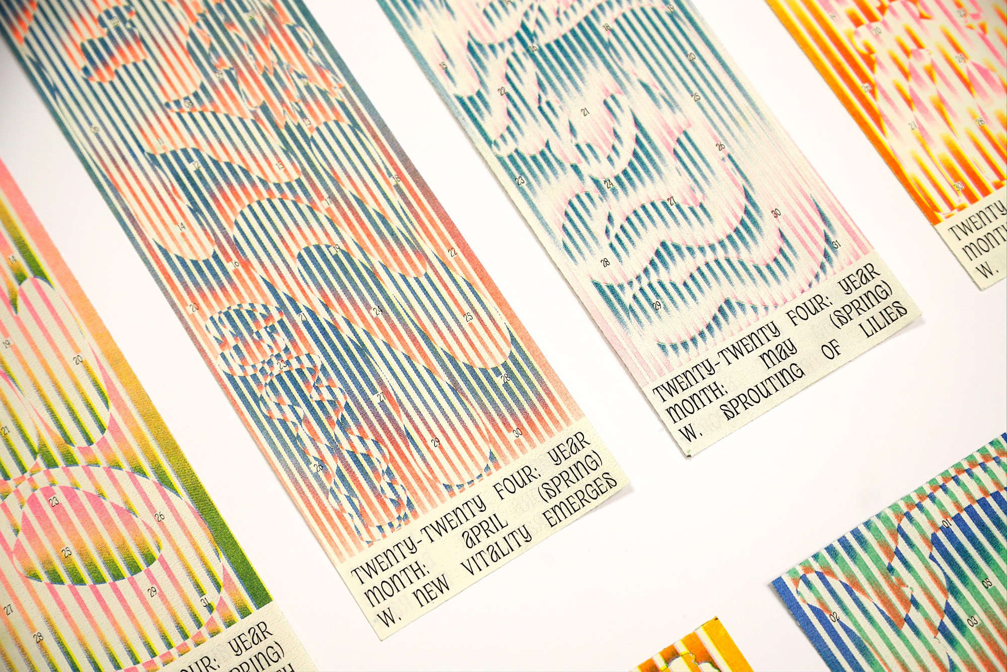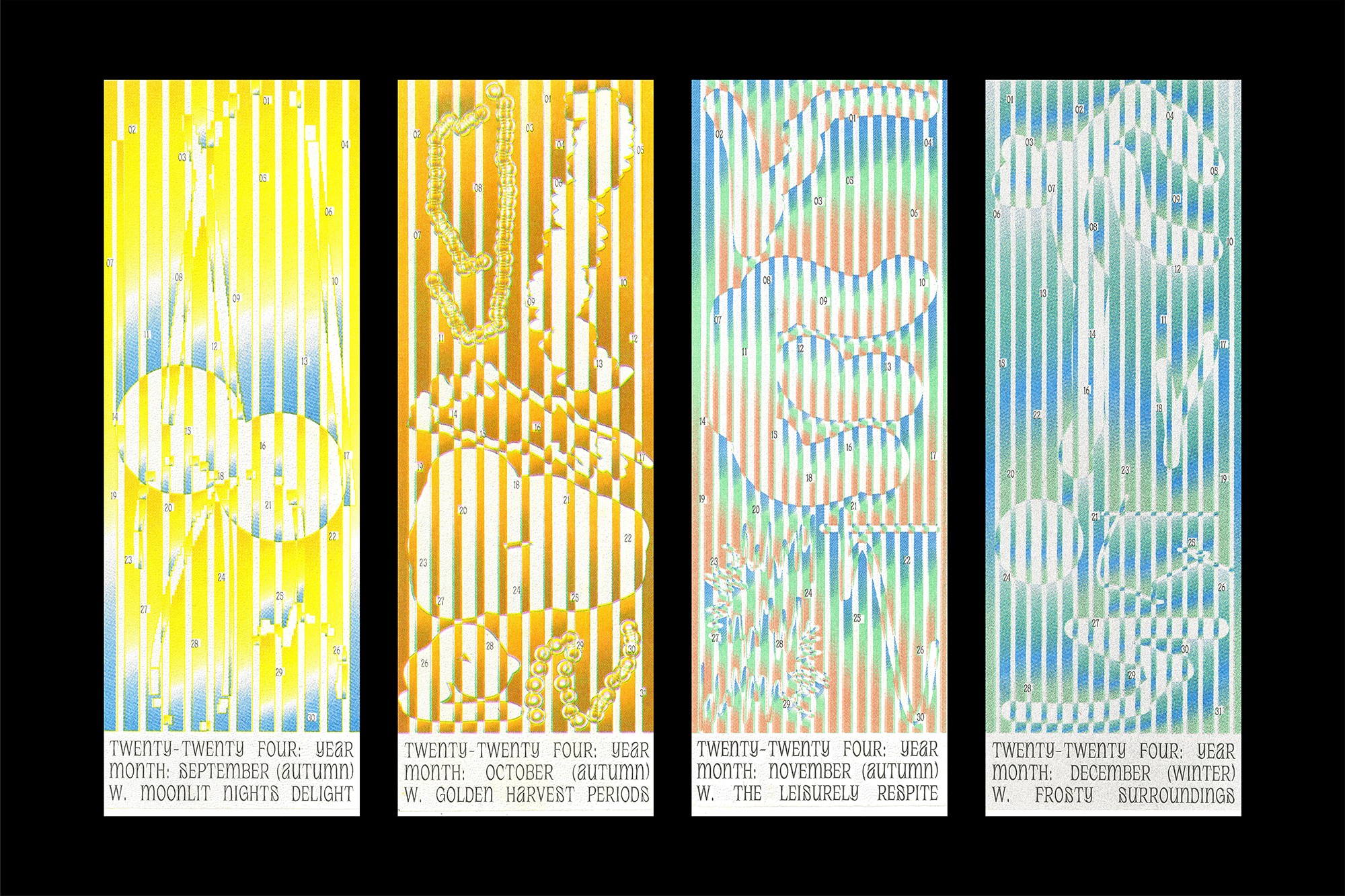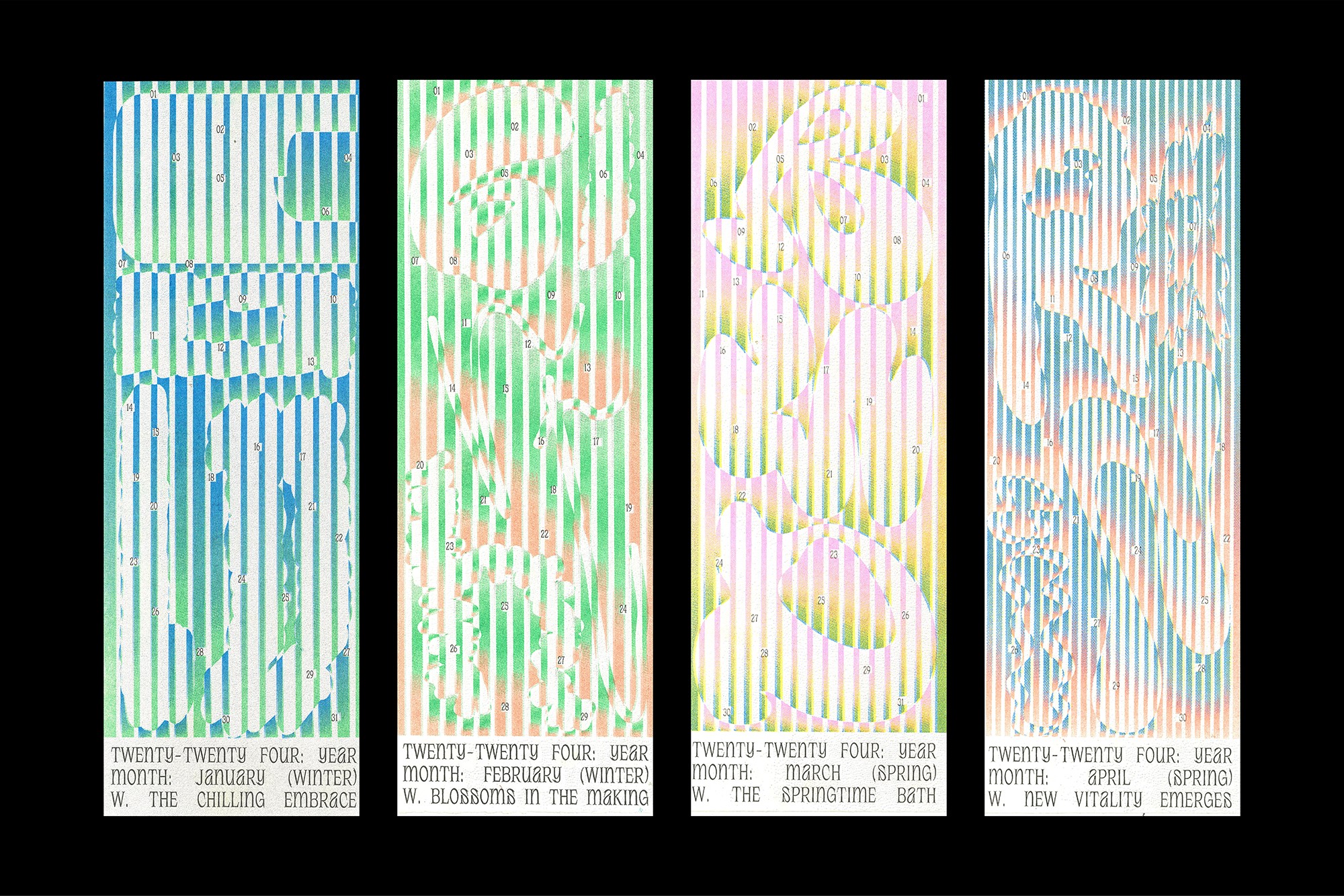 Season Type Calendar is inspired by the 24 Chinese solar terms. Through the exploration of “one scene, one window’, the calendar unravels unique narratives throughout. Through gradient, experimental, and playful type designs, the calendar delves deep into the potential of fonts in visual communication. Through this project, we challenge the constraints of traditional font design, using gradient colors to evoke different feelings and emotional resonance to changing seasons. This project has been recognized by both the New York TDC and the Tokyo TDC as a Typeface of the Year.